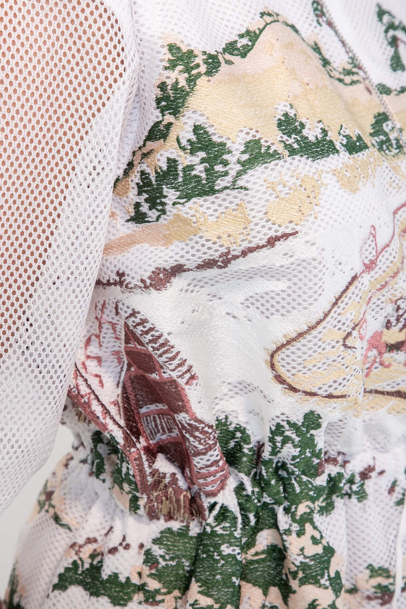 Embroidered short dress inspired by Hokusai artwork featuring functional pockets and adjustable waist and sleeve channels for effortless comfort and style.